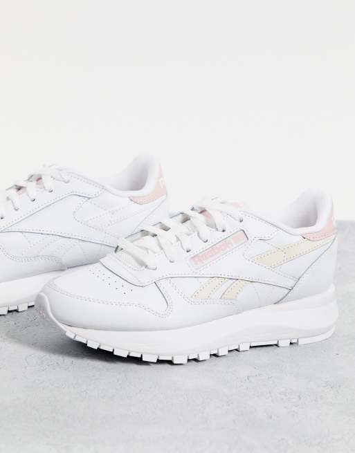 Pink and white reebok deals classics